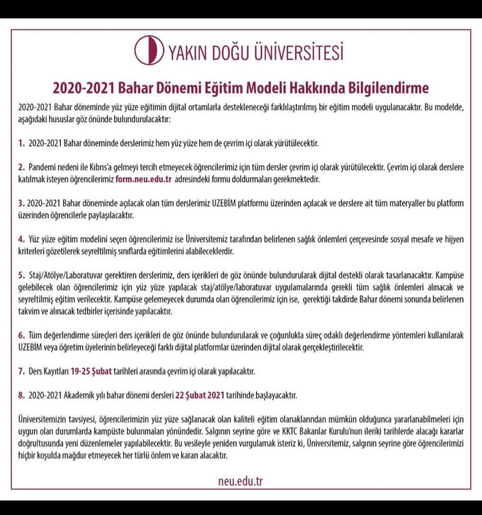 2020-2021 BAHAR DÖNEMİ BİLGİLENDİRME