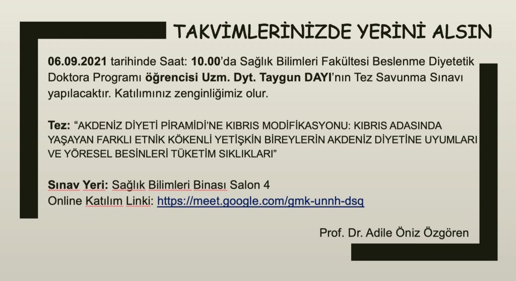 Akdeniz Diyeti Piramidi’ne Kıbrıs Modifikasyonu: Kıbrıs Adası’nda Yaşayan Farklı Etnik Kökenli Yetişkin Bireylerin Akdeniz Diyeti’ne Uyumları ve Yöresel Besinleri Tüketim Sıklıkları
